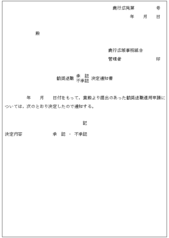 否を,管理者の承認を得て決定し,勧奨退職承認(不承認)決定通知書(別記様式第2