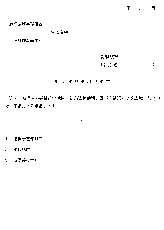 う。)を任命権者へ提出し,この要綱による勧奨の適用を管理者が承認して退職するこ